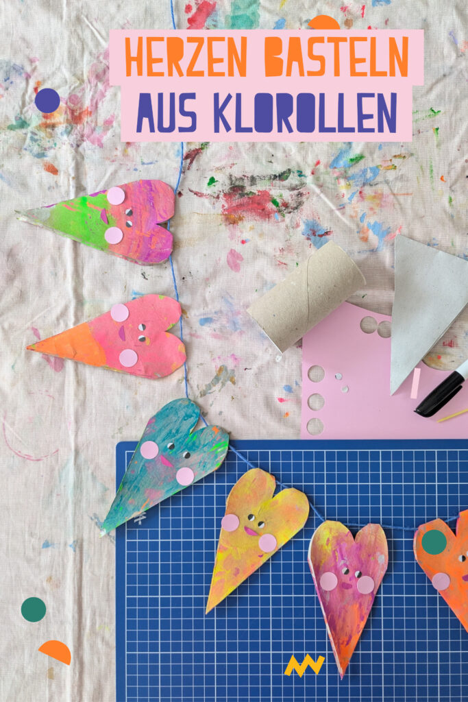 Heute wurde es mal wieder bunt am Esszimmertisch. Aus Klorollen haben wir eine herzige Girlande gebastelt.